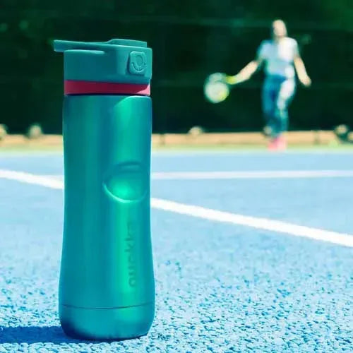 Deze Trinkflasche von Quokka ist ideal für unterwegs. Die Flasche ist mit einer speziellen Vakuumisolierung ausgestattet, die dafür sorgt, dass dein Getränk die richtige Temperatur behält. Kalte Getränke bleiben bis zu 18 Stunden angenehm kühl. Die Flasche verfügt über ein Schnellöffnungssystem. Drücke die Kappen zusammen und die Schutzkappe der Trinköffnung öffnet sich automatisch. Mit einem speziellen Tragebügel kannst du die Flasche an einem Rucksack oder Gürtel befestigen. Es ist eine ideale Lösung zum Laufen, Klettern oder Wandern. Diese langlebige Flasche ist auslaufsicher, bruchsicher und leicht zu reinigen.