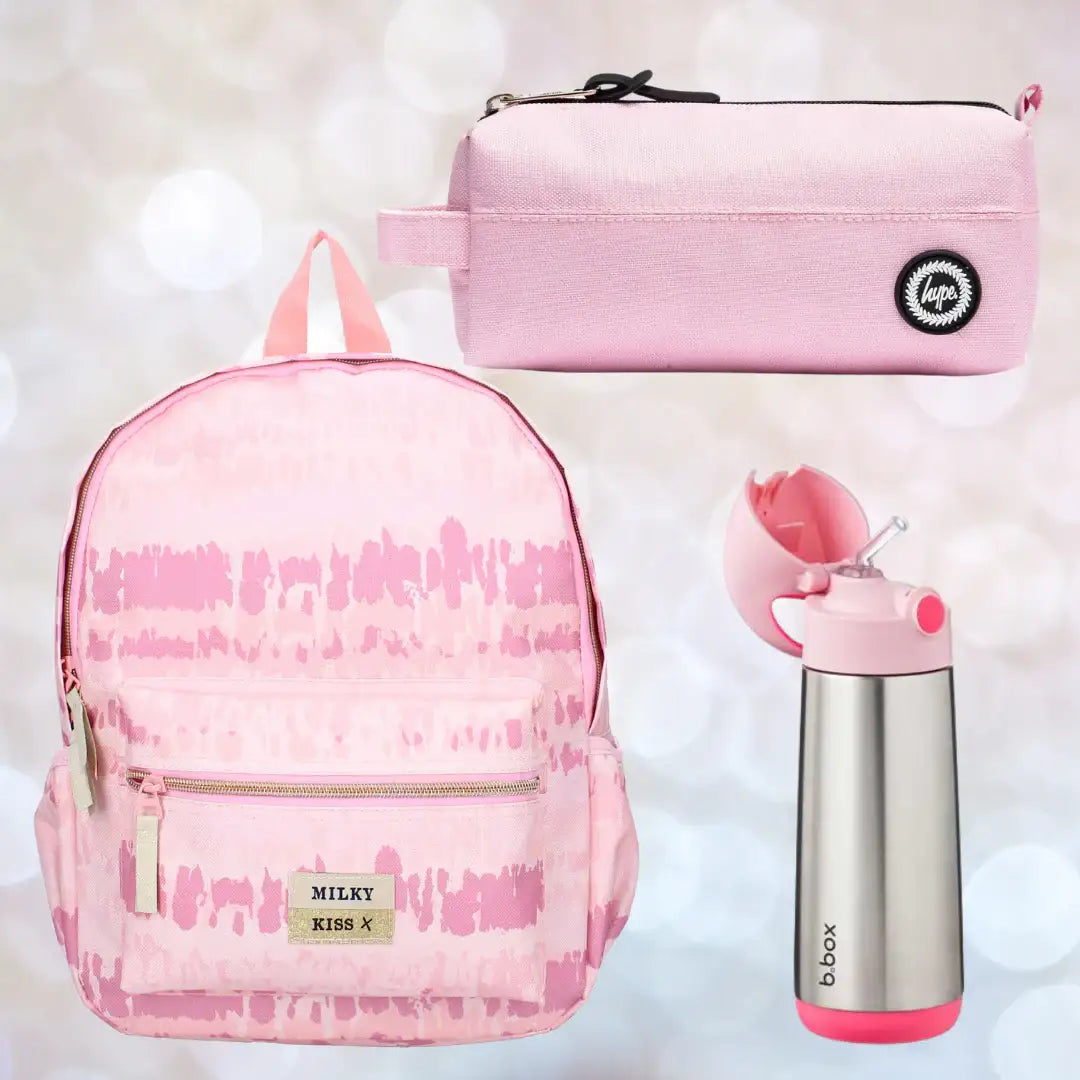 Erstellen Sie Ihr eigenes einzigartiges Schulset mit allen wichtigen Utensilien und schicken Sie Ihre Kinder stilvoll zur Schule. Wählen Sie Artikel mit einem Milky Kiss Thema und andere passende Accessoires. Wenn es ein Geschenk ist, können Sie es einpacken lassen und eine persönliche Karte hinzufügen.