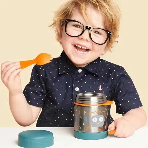 Das fröhliche 'Zoo' Lebensmittelglas ist eine thermische Aufbewahrungsbox für warme oder kalte Kinderportionen. Die Aufbewahrungsbox hält Lebensmittel 7 Stunden warm oder 5 Stunden kalt und hat ein Fassungsvermögen von 325 ml. Kommt mit einem 'Spork': Löffel & Gabel. Die 2-in-1 Gabel und Löffel lassen sich leicht an dem stabilen Halter befestigen. Mit tollen Zoo-Freunden!