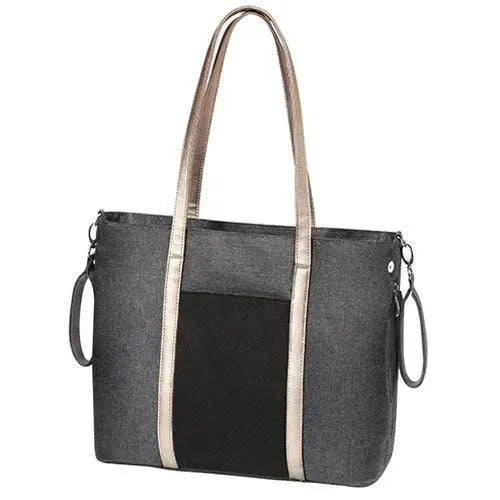 The "SO DYNAMIC" mommy bag is a trendy urban bag for mom and baby. The well-thought-out functionality makes it an ideal choice for shorter and longer walks. It is equipped with a long shoulder strap and short handles, as well as a changing pad. The bag features 9 storage pockets, including easily accessible pockets for phone or documents and mesh pockets for bottles. The main compartment has a zipper closure and two side snap buttons allow for reducing the bag's volume when it is loaded. The "SO DYNAMIC" bag is also equipped with side straps that allow the bag to be attached to a stroller. Subtle metal finishing elements give this bag an urban chic.