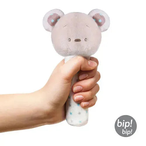 This squeeze toy from Babyono will provide your little one with hours of playtime fun! The squeeze toy in the shape of Tony bear is made of soft fabric and squeaks when you squeeze it. This stimulates your child's hearing. The Babyono squeaker is narrow, making it easy to hold even with the smallest hands.