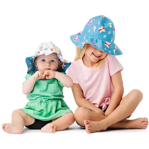 Our reversible sun hats with patterns for children are lightweight, super soft, splash-resistant, and feature cute patterns on both sides. The chin straps fit perfectly through the adjacent eyelets, allowing our hats to be worn practically on both sides. UPF 50+ provides maximum sun protection for your child's head, ears, and neck.