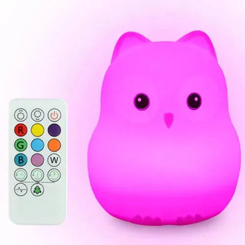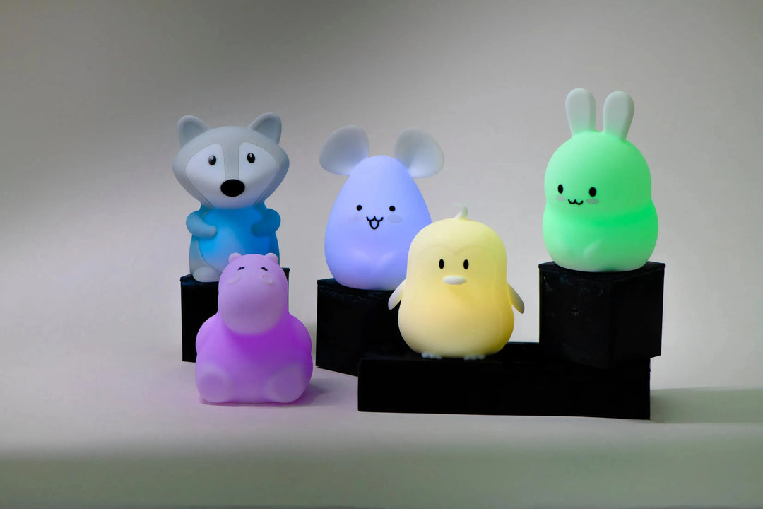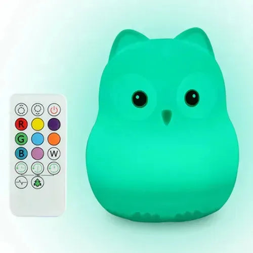 The night light is made of 100% washable silicone and has a perfect size for little ones. This night light is rechargeable with the included USB cable and provides a minimum battery life of 10 hours per charge. Besides white light, this night light also shines in 8 other colors, which can be changed by touching the night light or with the included small remote control. With the remote control, you can also adjust the light intensity and optionally set the timer, so the night light automatically turns off after 15, 30, or 60 minutes.