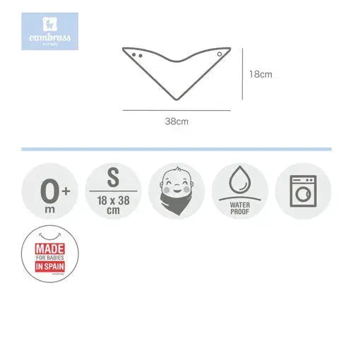 A cute and stylish baby bandana bib for the daily routine. The gray bib from the Spanish brand Cambrass is very handy against drooling and when your baby is getting their first teeth. It is made of cotton and is easy to fasten with snaps at 2 different lengths. Additionally, the bib can also be washed in the washing machine.
