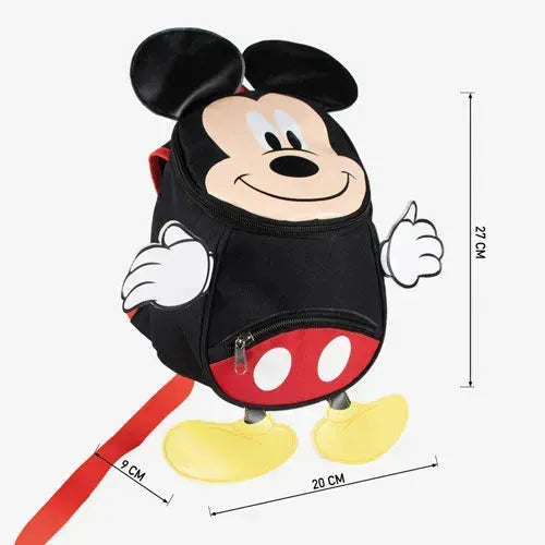 Mickey Mouse mini backpack with a detachable leash for the smallest travelers. The child harness backpack is super handy and also looks super cute. The little backpack is complete with ears and feet. The safe, easy-to-attach leash keeps walks in busy areas relaxed. Remove the leash and your little one will feel like a big kid with his/her own mini backpack!