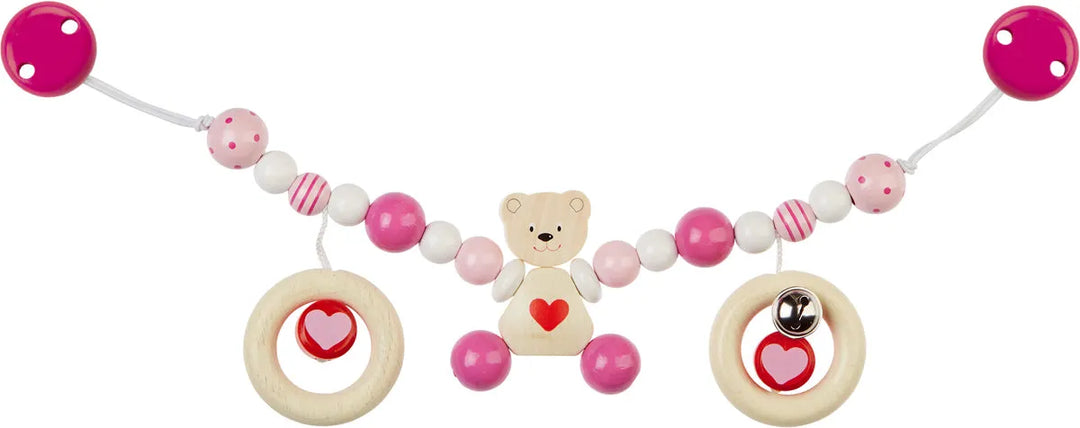 Wooden pacifier chain to attach a pacifier to prevent losing it.