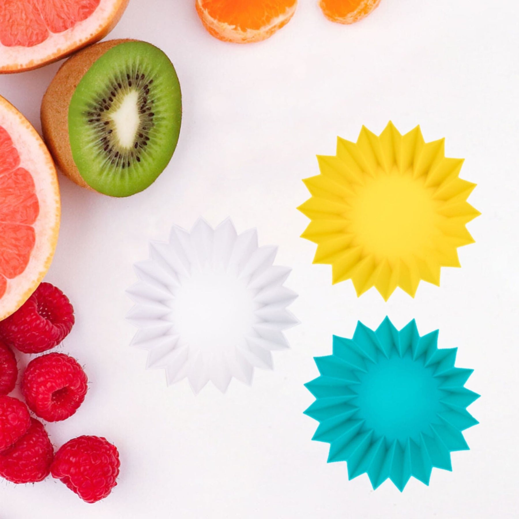 Met de Lunch Punch siliconen vormpjes scheid je eenvoudig verschillende porties in de lunchbox op een speelse en praktische manier. De flexibele zigzagranden passen in diverse lunchtrommels, waardoor je gemakkelijk snacks, dips, sauzen en bijgerechten kunt toevoegen.