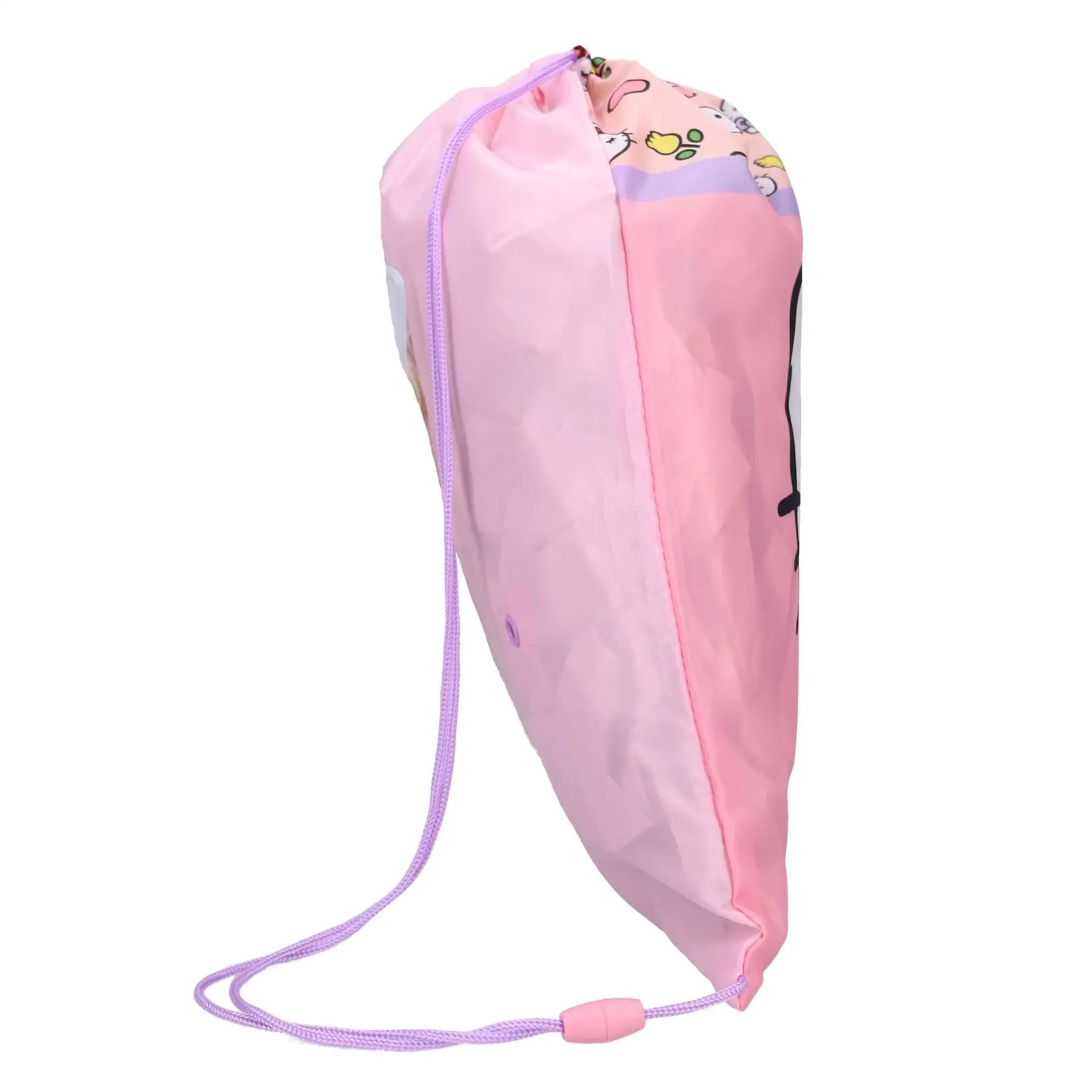 Roze Hello Kitty gymtas voor kinderen met trekkoord en schattig patroon.
