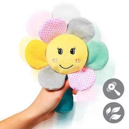 De rammelaar is gemaakt van volledig zacht materiaal. De bloembladen zijn gevuld met craquelé materiaal en zacht ratelend geluid. Er zijn allerlei interessante geluiden, stoffen en activiteiten die zeker de aandacht van uw baby zullen trekken. De rammelaar is goed voor de ontwikkeling van de hand-oogcoördinatie. Het perfecte kraamcadeau!