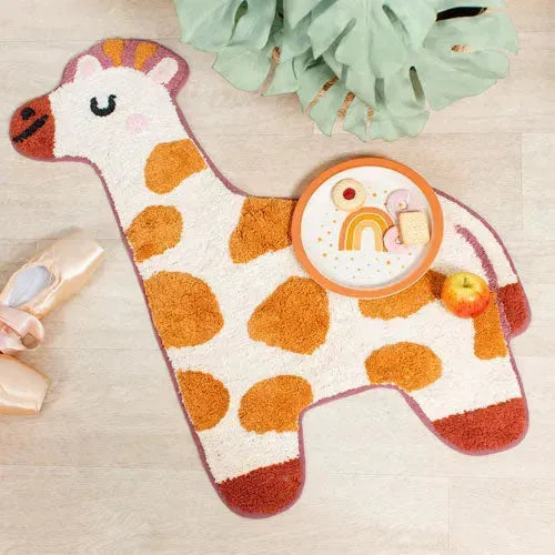 Voed met de natuur en voeg een zachte aanraking van de buitenlucht toe aan je huis met dit pluizige giraffevormige vloerkleed. Creëer een rustige en rustgevende sfeer in de kinderkamer met warme beige en zachte bruin, die de schattigheid van dit vriendelijke karakter benadrukken.